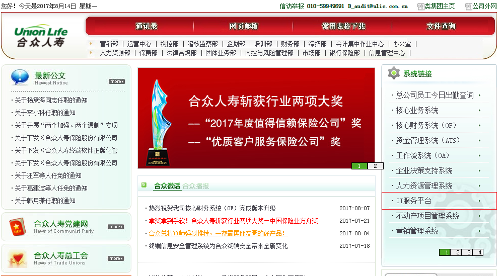 应用系统类: 指各类办公应用系统(如核心系统、财务系统、MIS系统、E合众等等)出现问题。