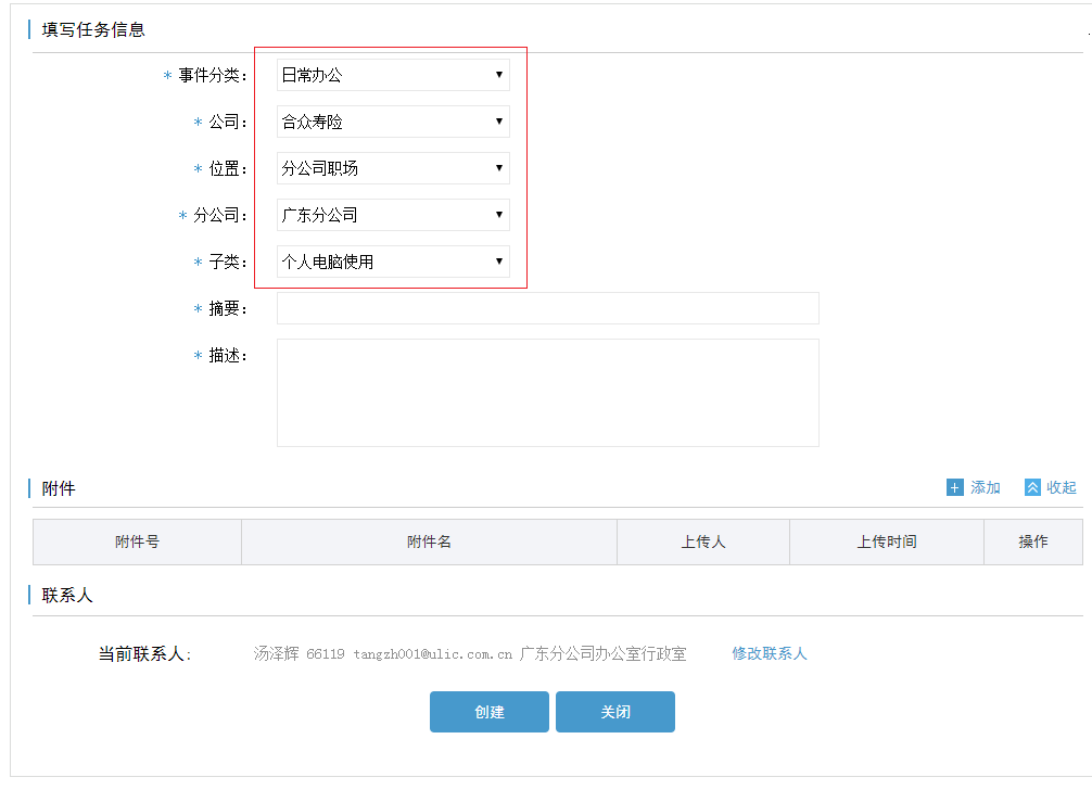 1. 若是代其他提交工单,请修改联系人