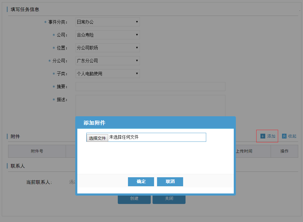 1. 点击附件-添加,附上出现故障的截图