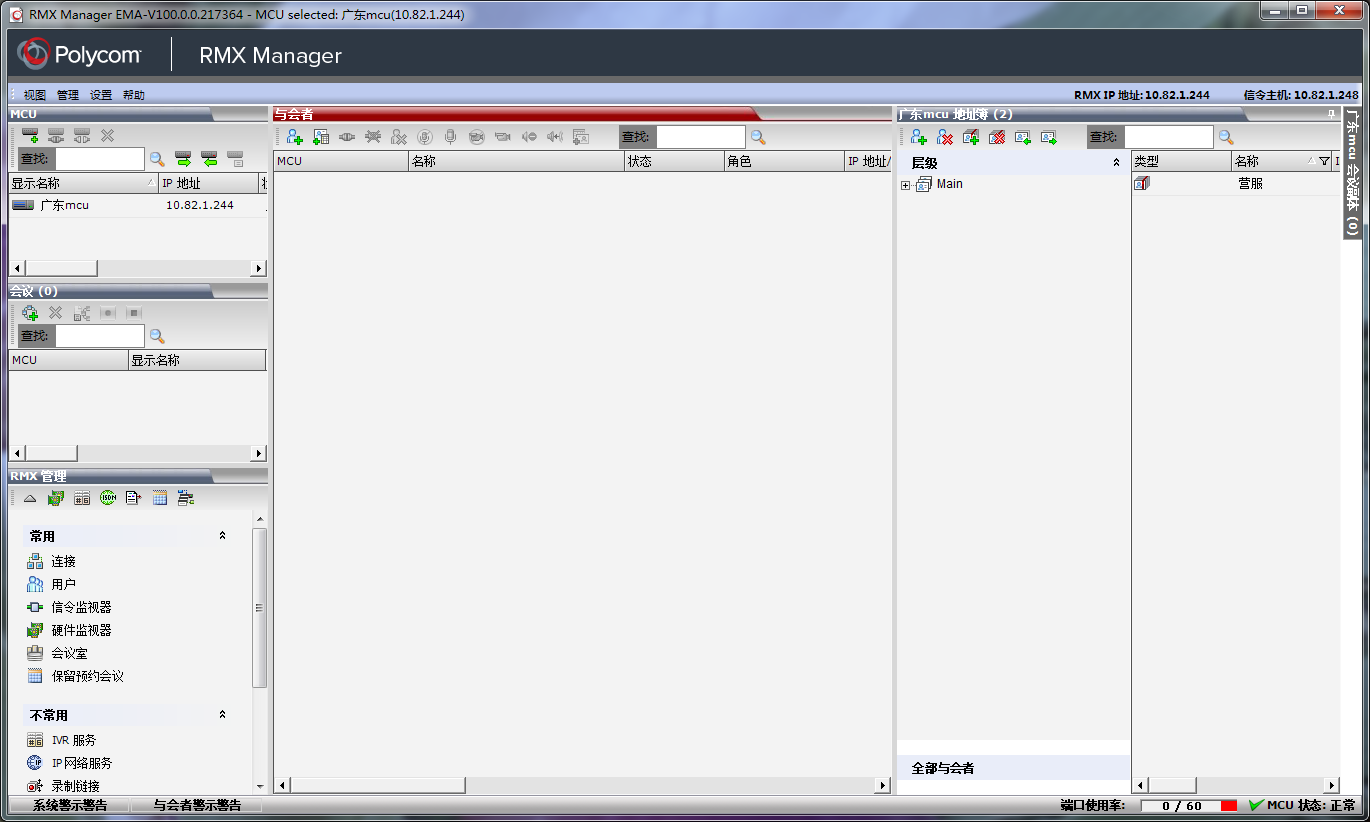 - 打开RMX Manager软件,双击列表中的《广东MCU》进入控制台