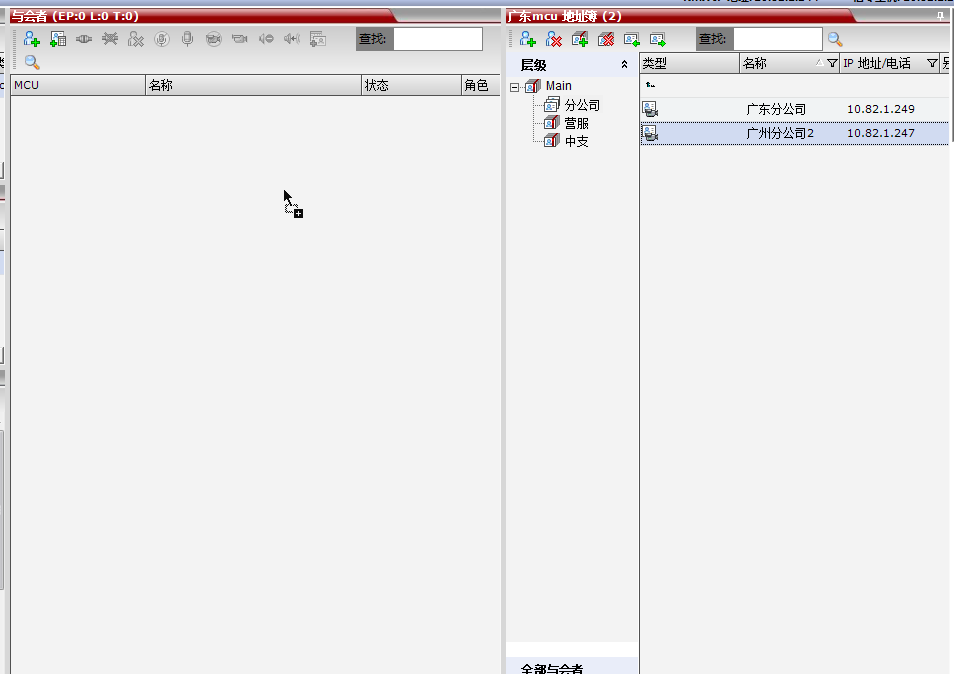 - 在右侧列表中找到《会议面板》,可以看到由总部连接过来的会议(会议号固定:2082)