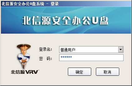 - 双击“北信源安全办公U盘”进入安全U盘文件列表,在安全U盘文件列表里再双击“北信源安全办公U盘”运行软件,会弹出登录对话框: