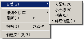 文件夹查看方式包括大图标、小图标、列表及详细信息四种查看方式。右键单击安全区内容区的空白区域,弹出下拉菜单,单击【查看】,在查看菜单中选择需要的查看方式: