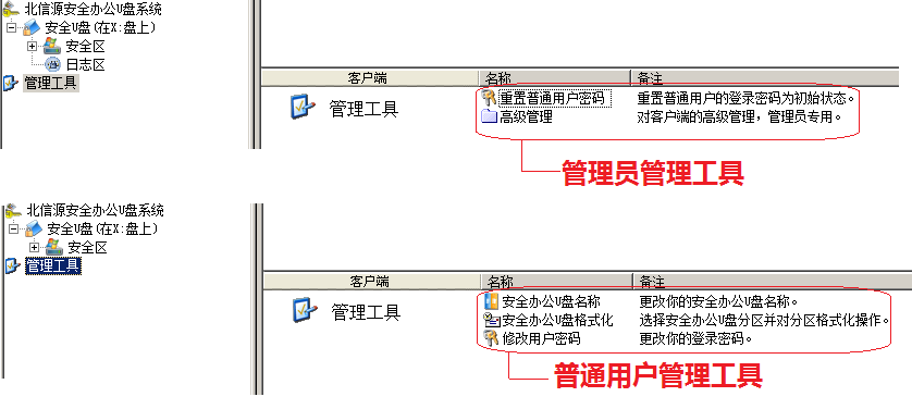 普通用户管理区是以普通用户身份登录安全办公U盘,进入管理工具内容区进行管理。