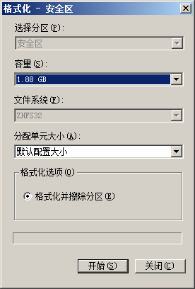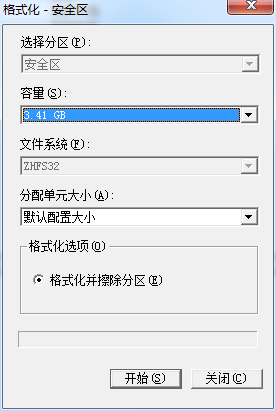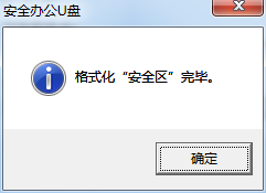 - 单击【确定】,开始进行安全区格式化。格式化完成之后,系统提示格式化完毕,此时可以进行安全区的相关操作了。