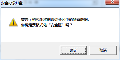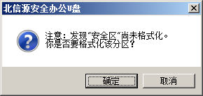 - 首次使用安全U盘资源管理器安全区,需要对安全区进行格式化操作。单击管理器中的【安全区】,弹出格式化提示框: