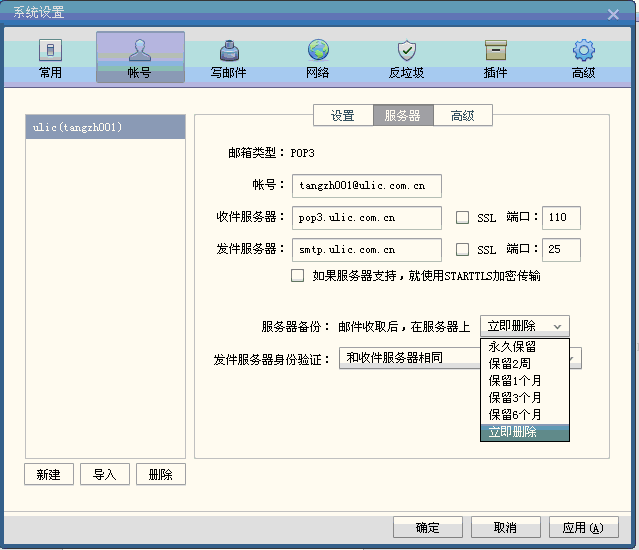 - 首先参照(一)邮箱安装 把服务器备份设置为立即删除