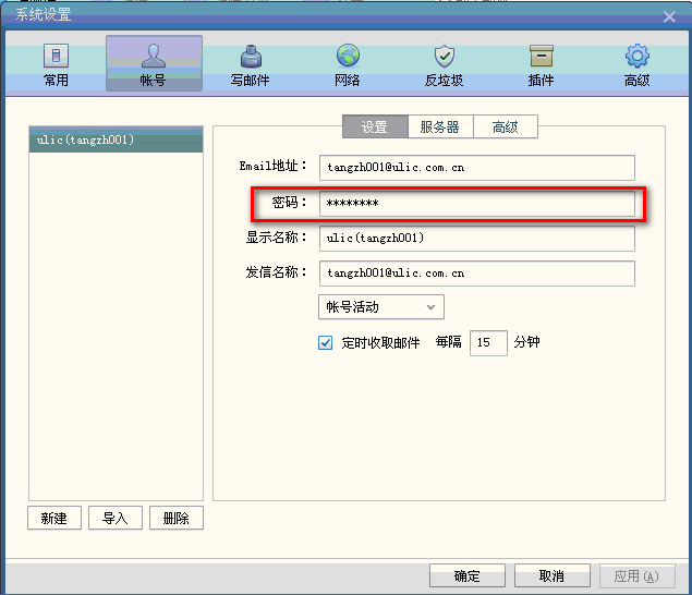 - 选择邮件服务器,然后在密码处输入新的密码,再点击确定