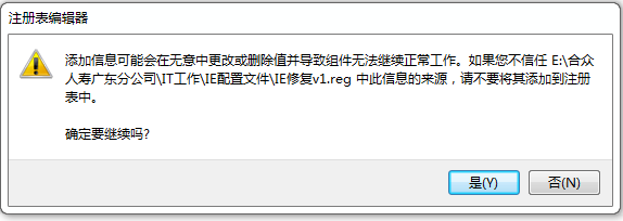 - 打开注册表文件并单击确定导入注册表,点击此处下载