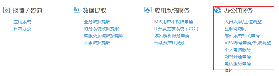 1) 登陆总公司网页中“IT服务管理平台”---选择相应的服务请求