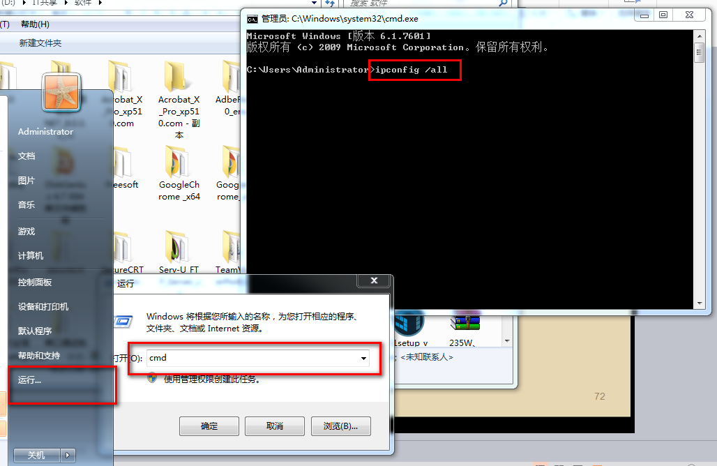 打开运行,输入cmd,点击确定,输入Ipconfig /all