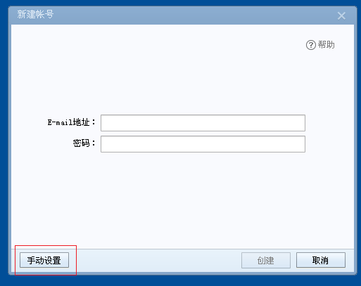 - 点击手动设置,如下图输入你的邮箱账号和密码